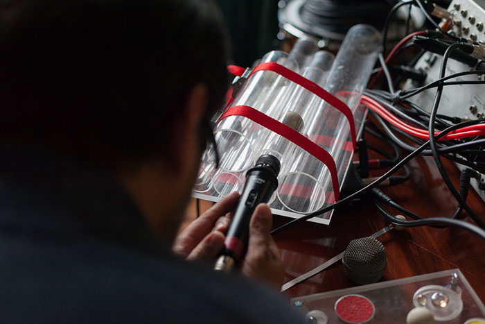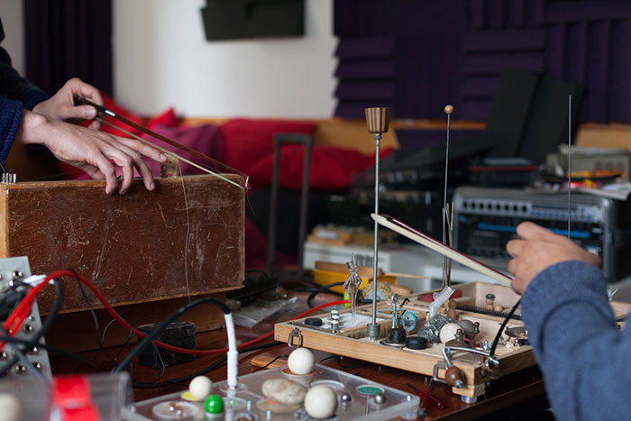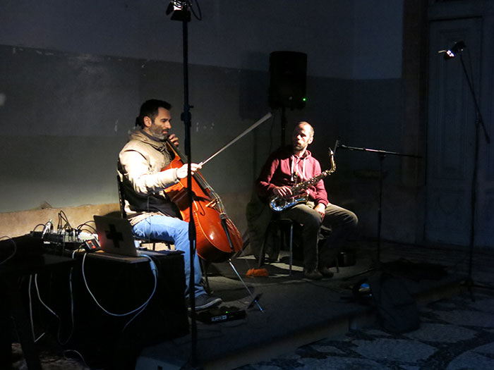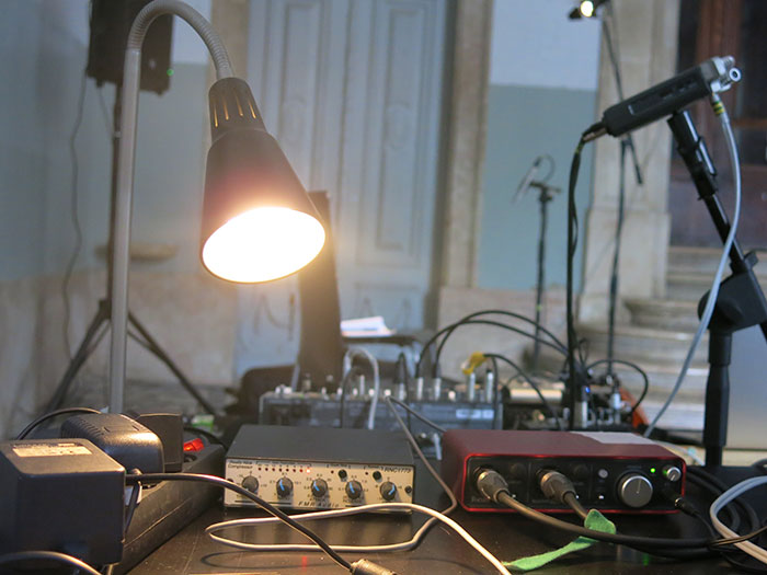 This project included two artistic residencies – one of them at Oficinas do Convento, in Montemor-o-Novo, and the other at Sonoscopia, in Porto – that worked as research, creation and collaboration labs. It concluded with a public presentation of the musical piece created throughout the duration of the project, occurring simultaneously in three geographical locations (Porto, Montemor-o-Novo and Lisboa).