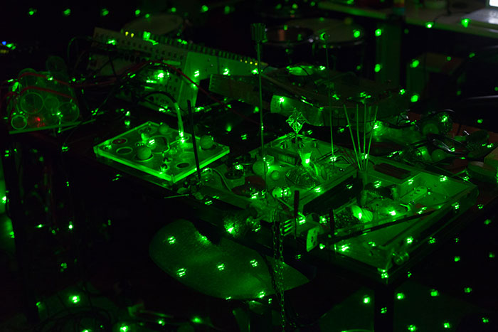 > compositional possibilities involving the interaction between the three rooms were tried out – taking the latencies of the system into account or controlling who could hear whom during the performance;